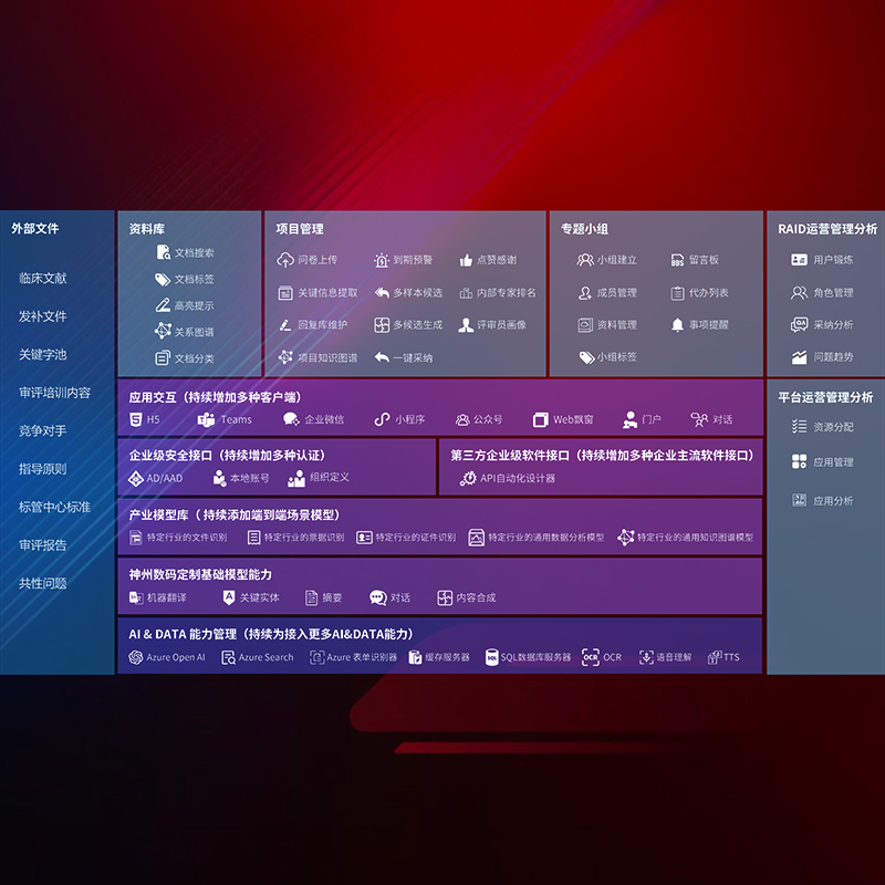 医疗器械产品上市前,,,,要熟悉严格与繁复评审标准,,,整理分析监管机构指导文件中的海量信息。。。。企业急需一个智能化解决方案,,,,提升知识管理效率,,提高评审通过率,,,以提升其市场竞争力。。